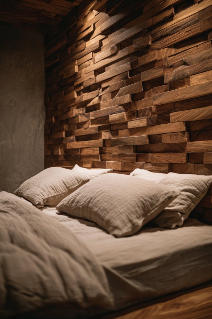 Imagine a wall clad in reclaimed wood planks, their natural grains and knots adding character. The warm hues of honey or deep espresso stretch across the space, catching the soft glow of bedside lighting. The texture creates depth, making the room feel like a cozy cabin in the woods. It’s like wrapping yourself in a warm hug every time you step into the room.