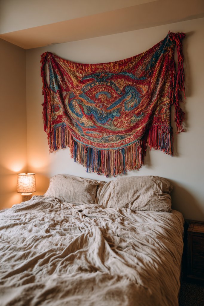14. Tapestry or Fabric Wall Hangings with Boho Vibe