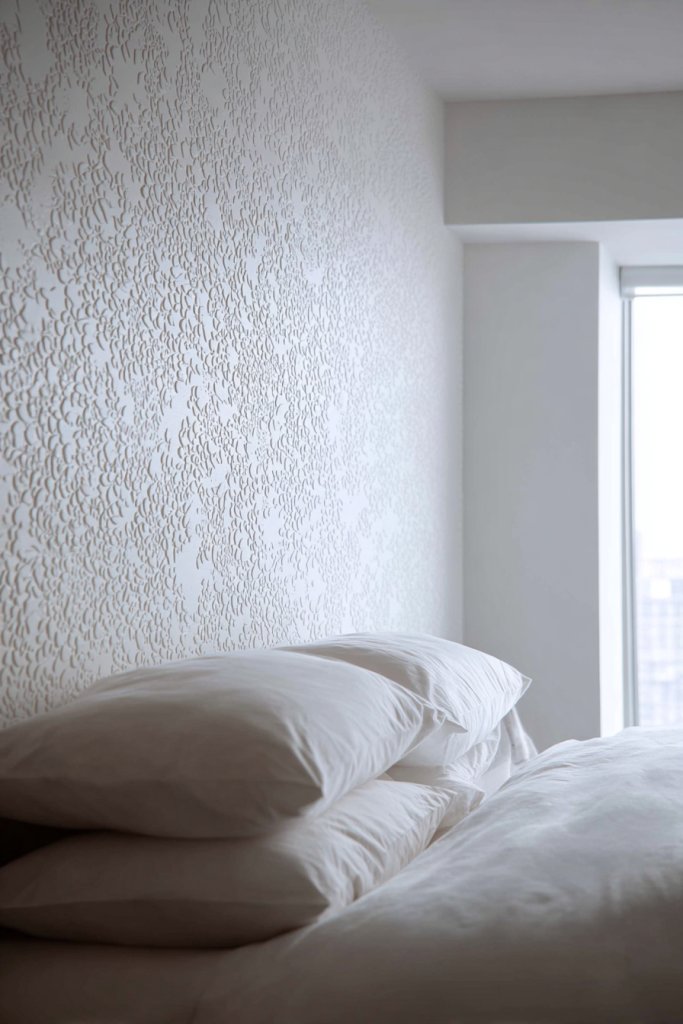 Picture a wall finished with textured plaster, stucco, or embossed wallpaper in shades of white or off-white. The surface catches light differently throughout the day, creating gentle shadows that add dimension. When paired with crisp bedding and simple decor, the effect is a clean, calming sanctuary. It’s like a blank canvas awaiting your personal touches.