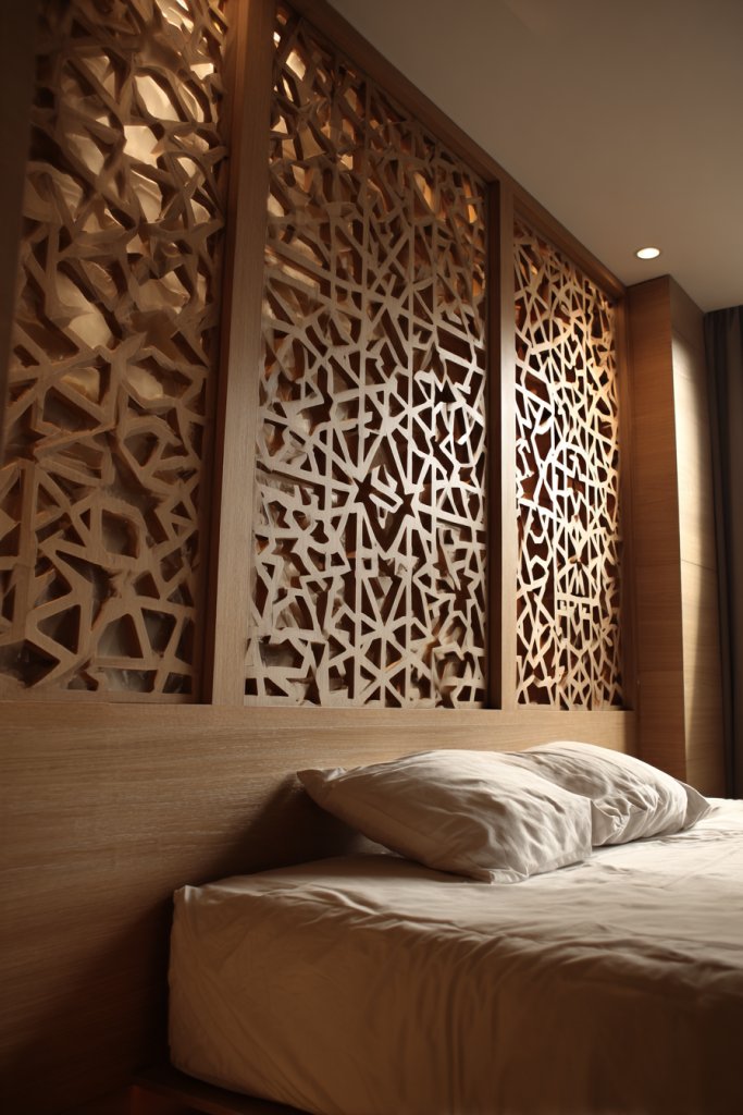 Work with a skilled woodworker or order custom panels from a laser-cutting company. Mount the screens securely on a wall or frame them for portability. Ensure the panels are properly sealed and finished to prevent damage. Position the screens to create a visual or physical separation, balancing openness with privacy. Pair with neutral or textured bedding for a harmonious look.