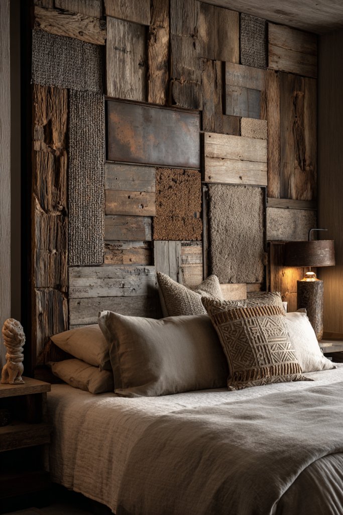 Layer materials in a way that balances the room—use wood for warmth, metal for shine, fabric for softness, and paint for color. Mix vintage and modern elements for a timeless appeal. Incorporate textured textiles and layered bedding to echo the layered wall. Seasonal updates like throw pillows, blankets, or decorative trims keep the look fresh.