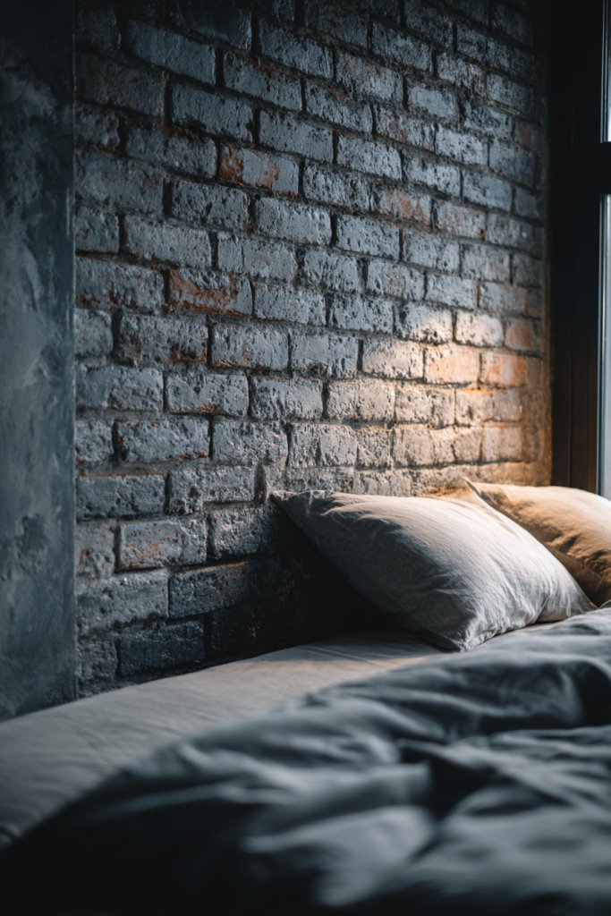 Picture a wall covered in distressed red bricks or monochrome gray stones, their rough surface contrasting with soft bedding. The textured panels reflect light differently throughout the day, creating shadows and highlights that add interest. The industrial vibe is complemented by metal fixtures, vintage lighting, and rugged furniture. It’s like stepping into a converted loft, but without the construction mess.