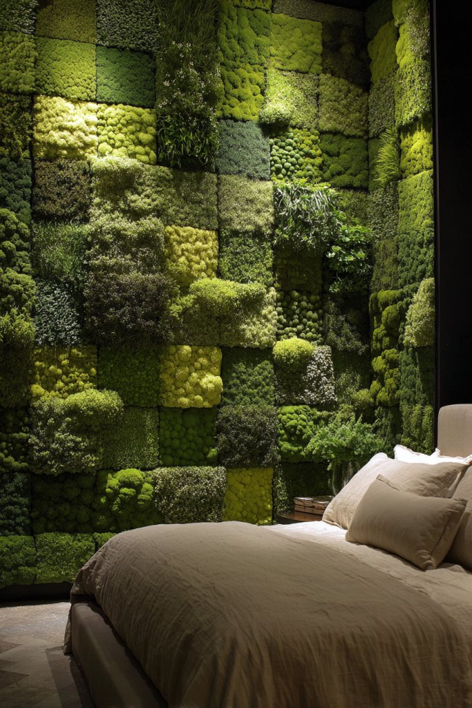 Craving a lush, green vibe in your bedroom but allergic or too busy to care for real plants? Faux greenery combined with modular panels creates a vibrant, nature-inspired focal point without the upkeep. It’s an easy way to bring a splash of color and life into your space that stays fresh year-round. Plus, it adds texture and a calming atmosphere.