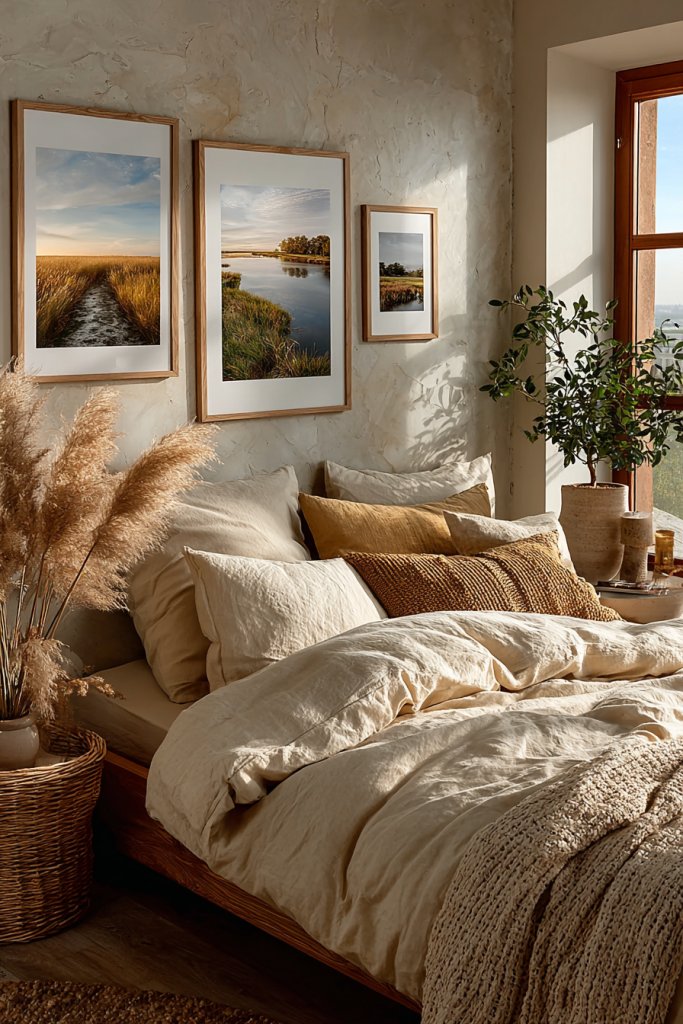 Soft, neutral artwork provides a tranquil backdrop that enhances your bedroom’s serenity. It’s an easy way to express your personality subtly. Once you see how simple prints elevate your space, you’ll be inspired to curate a wall that tells your story. Your bedroom will feel more restful and uniquely styled.