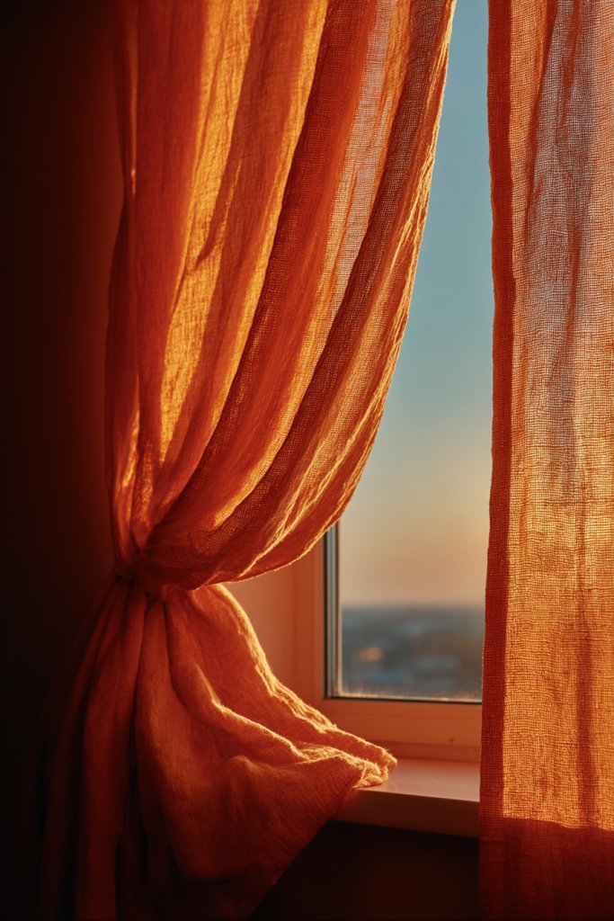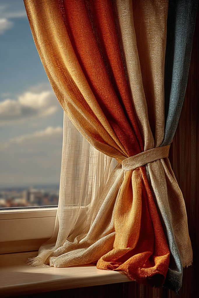 Imagine flowing curtains in warm beige or muted terracotta, softly framing your windows. The fabric’s texture adds depth—think velvet with a slight sheen or linen with a natural weave. When drawn, they diffuse sunlight gently, creating a warm glow. When open, they reveal a cozy window view that complements your decor.