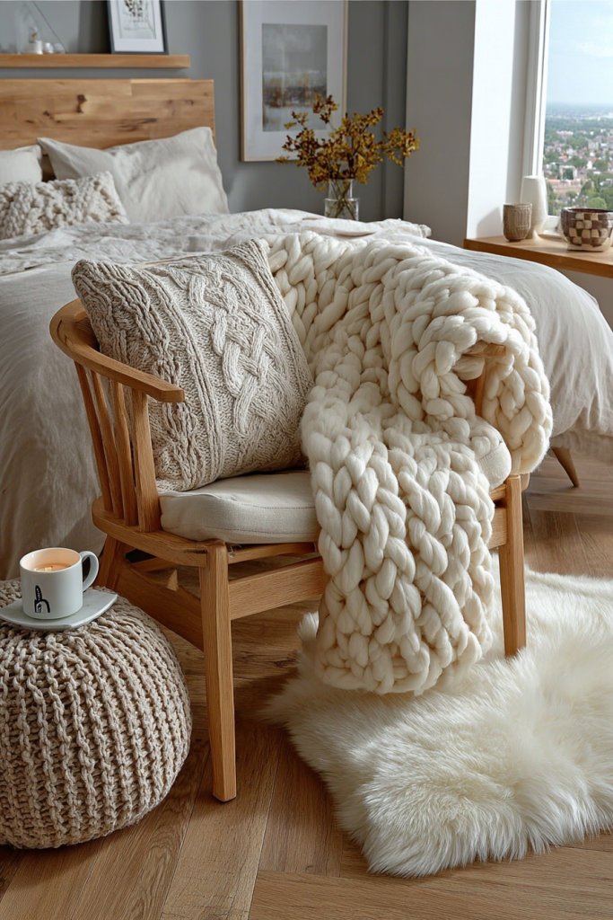 20. Personalize with Cozy Accessories Like Knitted Throws or Faux Fur Rugs