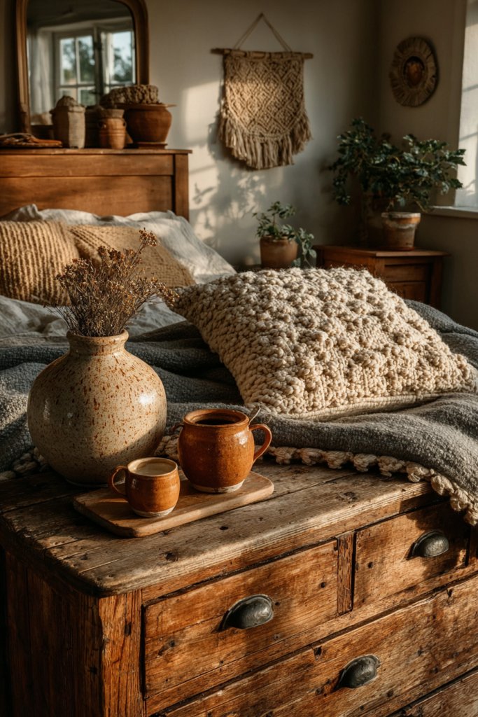 Imagine a vintage mirror with an ornate frame hanging above your bed, or a handcrafted macramé wall hanging adding texture to a blank wall. Mix in some old books, antique trinkets, or handmade ceramics to create a layered, lived-in look. The combination of pieces tells a story and invites curiosity. The room feels warmer and more authentic.