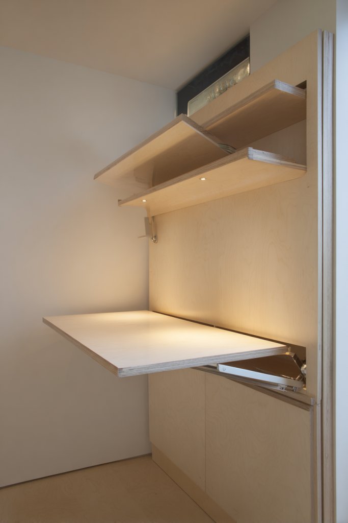 Living in a small space and need a workspace that doesn’t take up permanent room? A fold-down wall desk with a TV shelf above offers a clever, space-saving solution. It transforms your wall into a functional area for work, study, or hobbies, without sacrificing style or space.