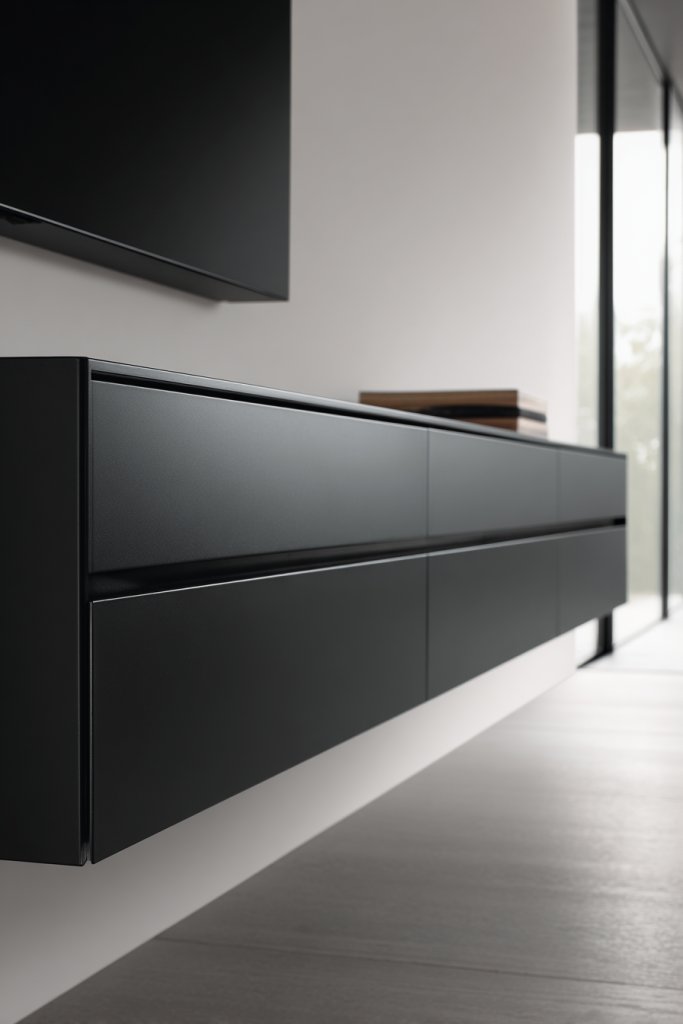16. Modern Black Matte Finish with Slim Profile and Hidden Drawers
