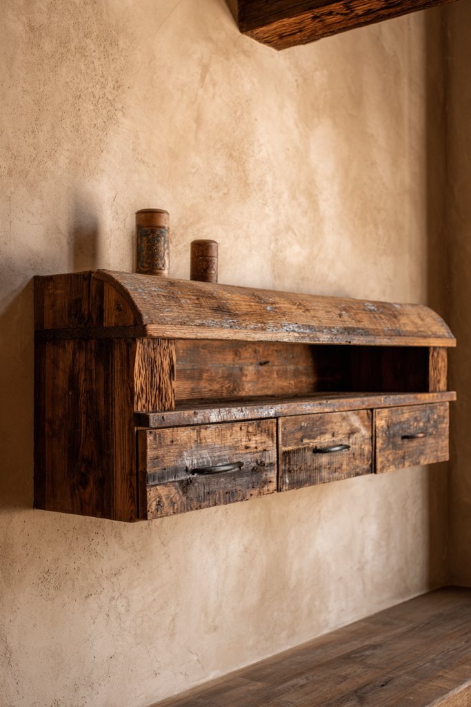 A vaulted wooden shelf with drawers is more than just furniture; it’s a statement of style rooted in warmth and authenticity. Its rugged charm complements various decor themes, from farmhouse to shabby chic. Trust your eye for mixing textures and creating a cozy, inviting space that feels uniquely yours. It’s a timeless look that will never go out of style.
