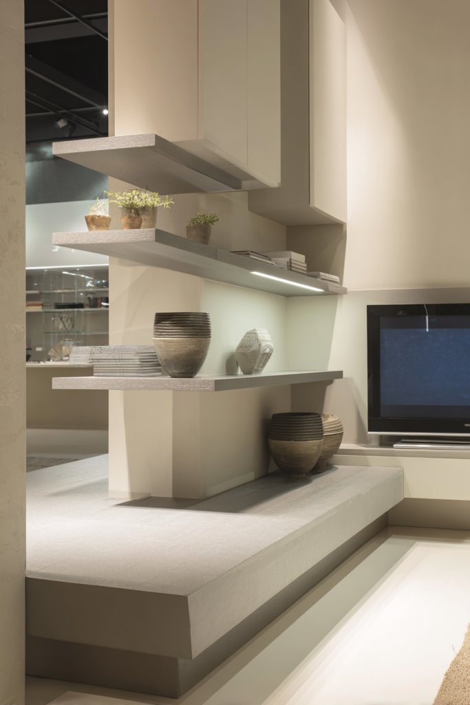 An elevated platform with open shelving transforms your TV space into a dynamic, eye-catching feature. It combines functionality with artistic flair, making your entertainment area a true design statement. Trust in its ability to bring sophistication and personality into your home.