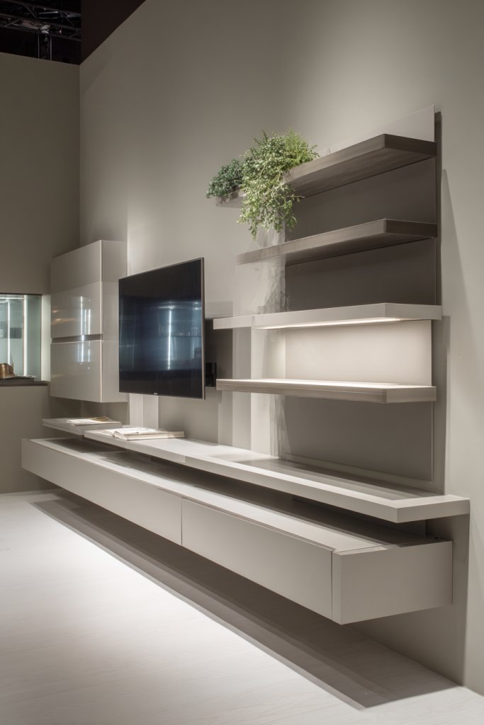 This design works well in contemporary, Scandinavian, or even industrial styles. You can opt for high-gloss finishes, matte textures, or wood veneer for warmth. For smaller spaces, a narrower version maximizes visual space. Seasonal updates include adding textured wall panels or accent lighting to keep the look fresh. Flexibility lets you customize storage compartments based on your tech and decor needs.