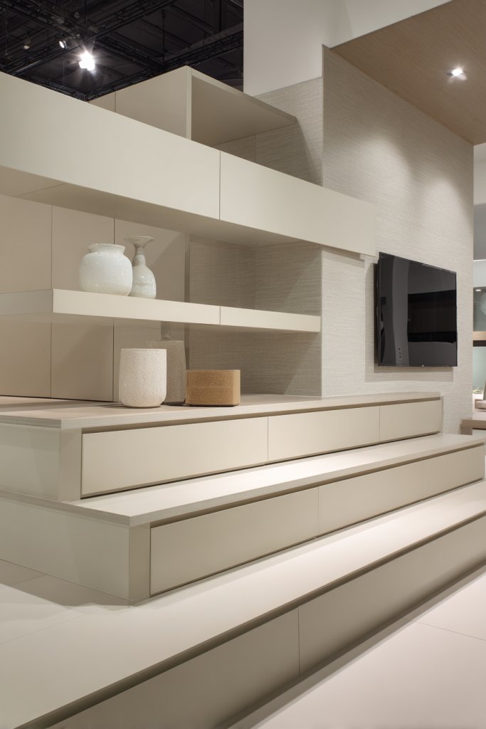 Is your current TV setup cluttered and unorganized, making your entire living space feel chaotic? A multi-level platform with built-in drawers and shelves offers a neat, elevated solution. It provides designated spots for everything, from remotes to decorative accents, making your room look polished and functional.