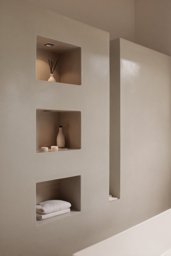 Decorate shelves with decorative jars, textured containers, or small sculptures. Use lighting inside or above niches to highlight your display items. Keep clutter hidden with stylish baskets or boxes. Personal touches like scented candles or unique toiletries can make the space more inviting.