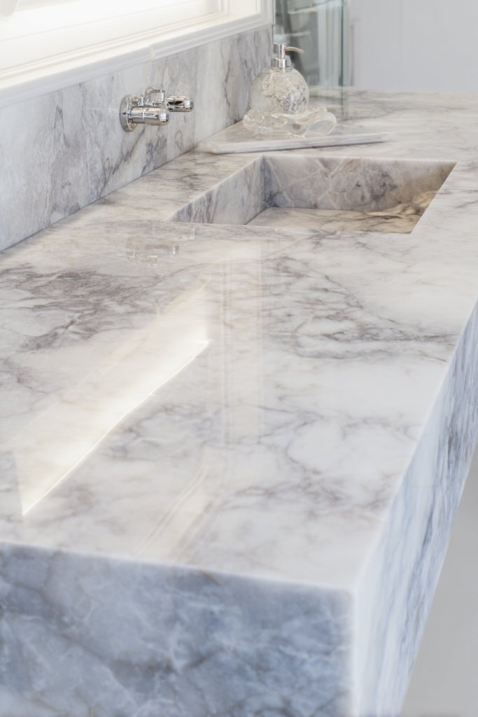 Add a pop of color or pattern with decorative edging or inlays. Use under-mount lighting or integrated LED strips beneath the edge to highlight the stone’s natural beauty. Incorporate textured cabinetry or contrasting hardware for visual interest. Personal touches like a soft hand towel or elegant soap dispenser can complete the luxurious vibe.