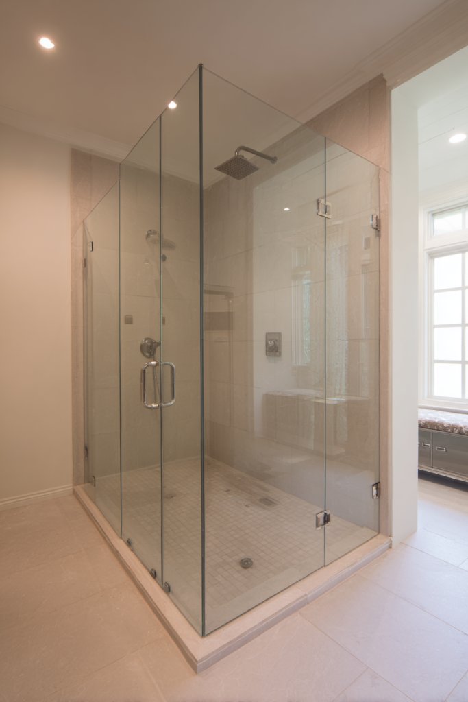 Picture transparent glass panels that seem to vanish into the room, revealing beautiful tile work behind. The lack of frames emphasizes clean lines and unobstructed views, making the space feel airy and open. Minimal hardware in matte black or brushed nickel complements contemporary decor. The overall look is crisp, sophisticated, and effortlessly elegant.