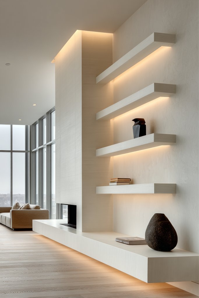 1. Floating Wall-Mounted Shelves with Hidden Storage