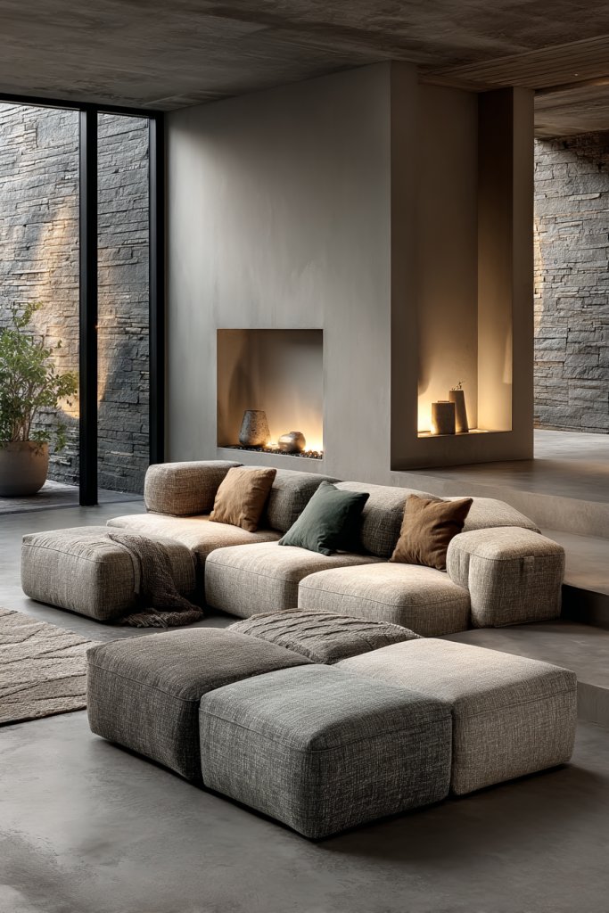 Picture a series of angular, interconnected sofa modules in vibrant or neutral fabrics. You can arrange them into a classic L-shape, a spacious U, or scatter them for a casual vibe. The geometric shapes add visual interest, with sharp lines contrasting soft cushions. The modular design allows you to reconfigure easily for different occasions—movie nights, parties, or quiet evenings.