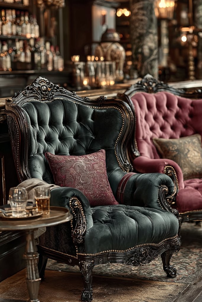 5. Vintage-inspired Velvet Armchairs with Elegant Detailing