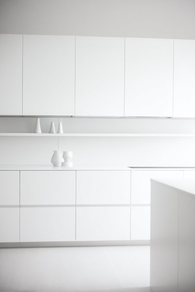 Imagine a kitchen where all cabinets are in a soft matte black or crisp white, creating a seamless flow from wall to wall. The handles are minimal, maybe just a subtle groove, keeping the look sleek. The countertops complement the cabinets, perhaps in a matching shade or a contrasting marble finish. The space feels airy, with plenty of natural light bouncing off the uniform surfaces, making it feel larger than life.