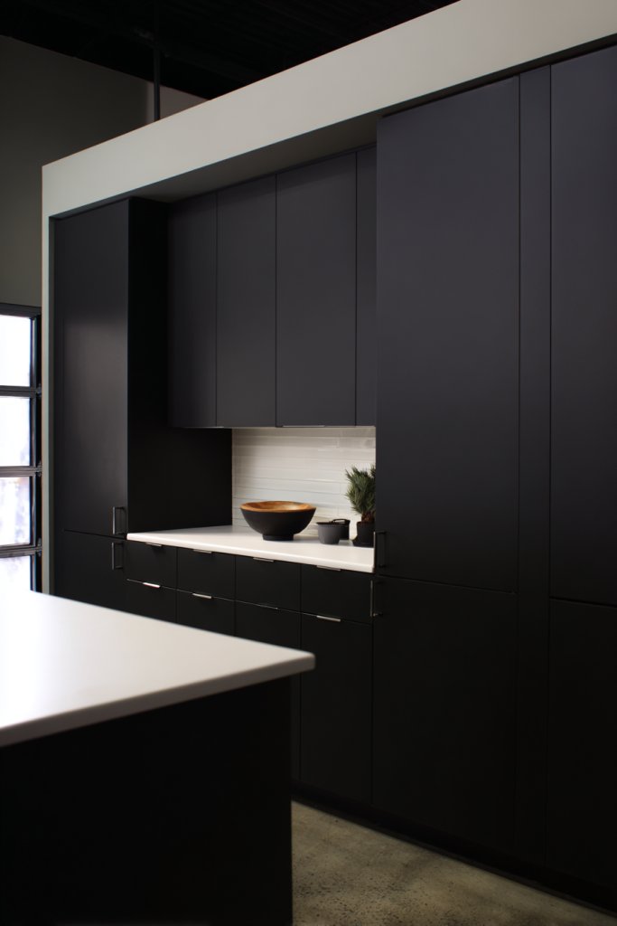 Choose IKEA cabinets with a matte or textured finish in dark hues. Install metal hardware, such as bar pulls or industrial-style knobs. Add open shelving in black or galvanized steel for storage and display. Use concrete-look countertops or quartz in gray tones for durability. Incorporate pendant lighting and bar stools with metal frames. Keep the space clean and uncluttered, emphasizing the raw materials.