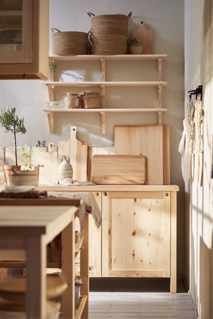 5. Scandinavian-Inspired Light Wood Accents with IKEA NORDMÄRKE or BEKVÄM