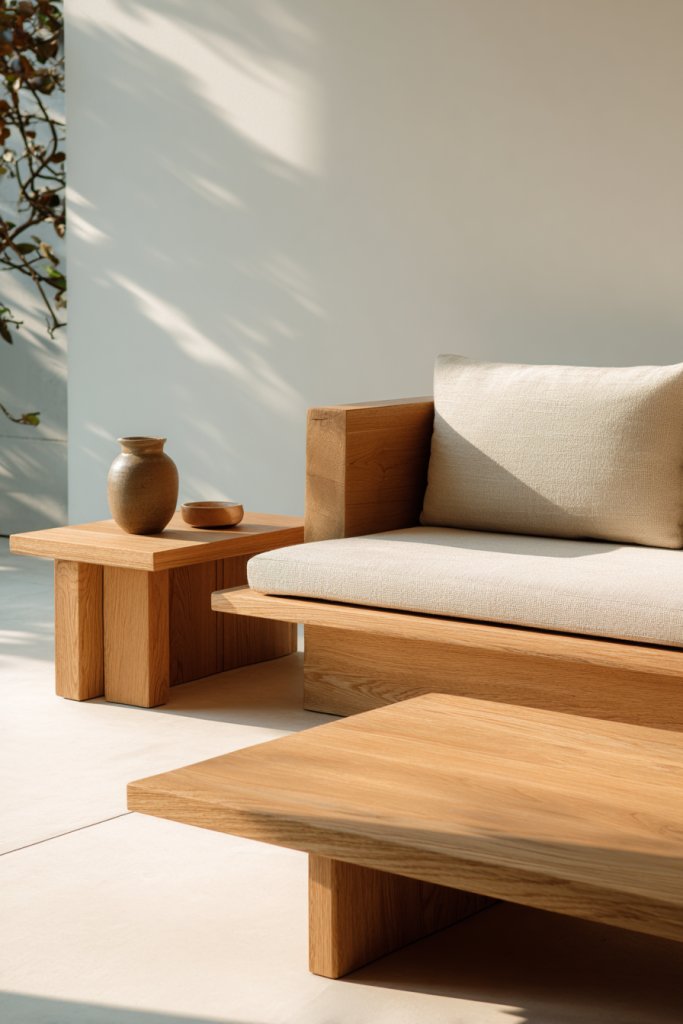 2. Incorporate Low-Profile, Sleek Furniture with Natural Wood Finishes