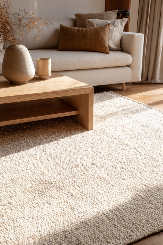 5. Select Textured, Neutral Area Rugs to Add Warmth and Depth