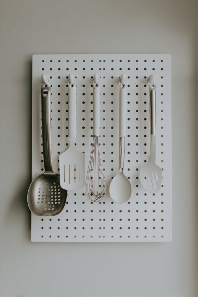 Cluttered drawers and counters make it hard to find what you need quickly. A pegboard offers a smart, stylish solution for organizing utensils, pots, and pans. It keeps essentials within easy reach and adds a modern industrial vibe. Who says organization can’t be cool?
