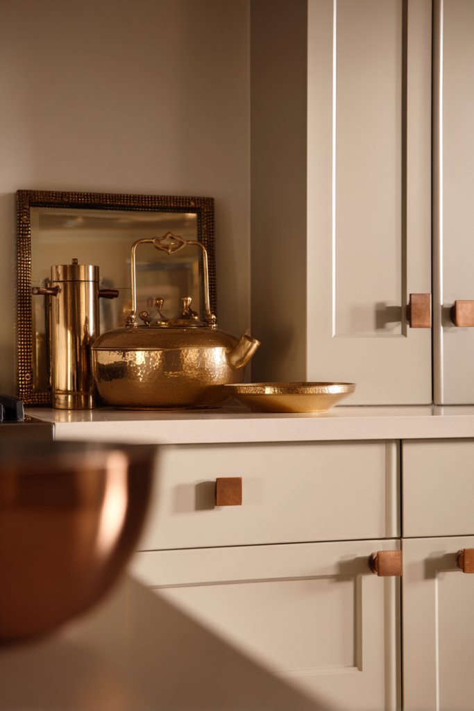 15. Use of Warm Metallic Accents (Brass, Copper, Gold)