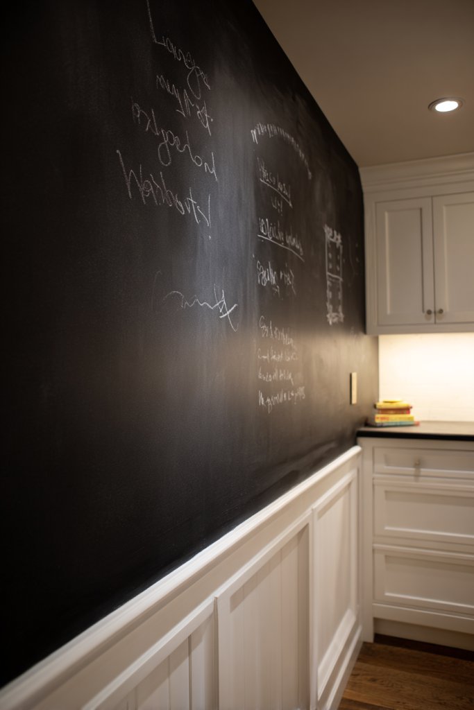 Imagine a large wall painted with matte black or dark chalkboard paint, framed with colorful washi tape or sleek molding. You see handwritten notes, doodles, and weekly menus filled with vibrant chalk colors. The wall becomes a dynamic piece of decor that changes daily, adding character and practicality. Kids and adults alike love doodling and brainstorming here.