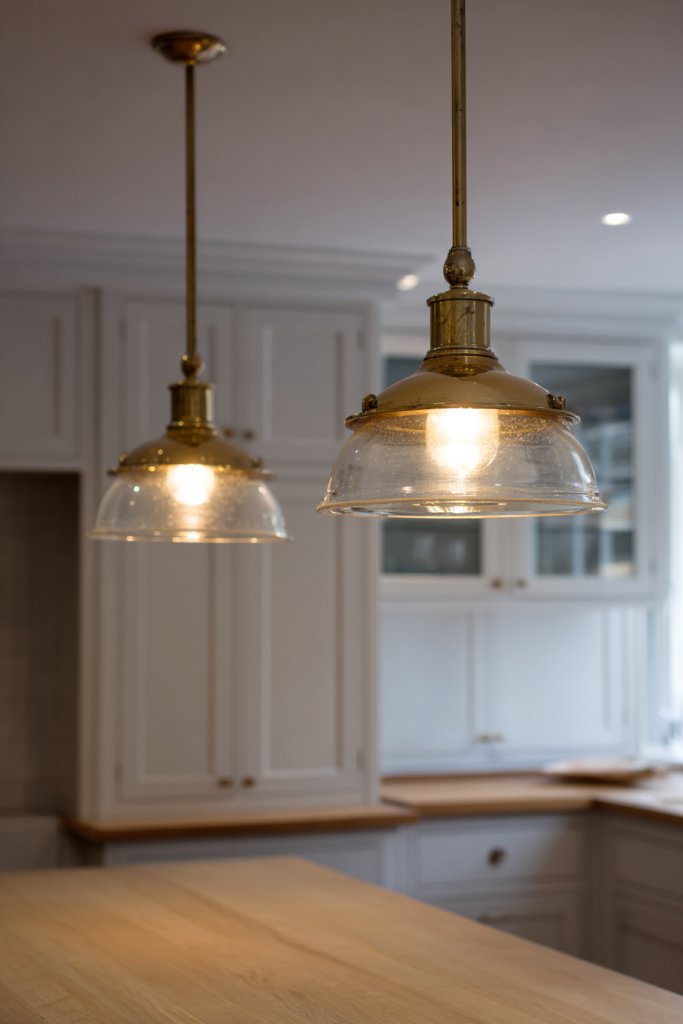 Picture an industrial-inspired kitchen with exposed filament bulbs hanging from twisted cords, casting a warm glow. These pendants sit above a farmhouse table or kitchen island, creating a cozy, inviting atmosphere. The vintage finishes—brass, copper, or matte black—contrast beautifully with neutral cabinetry. The result is a balanced mix of old-world charm and contemporary style.