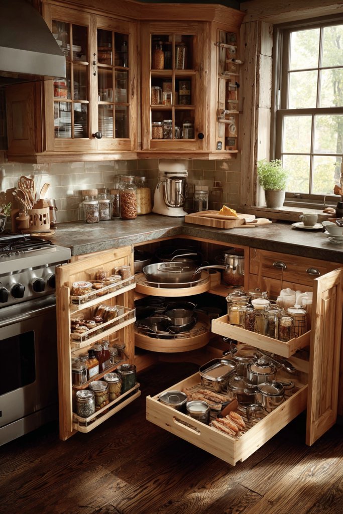 10. Smart Storage in Corner Cabinets with Lazy Susans
