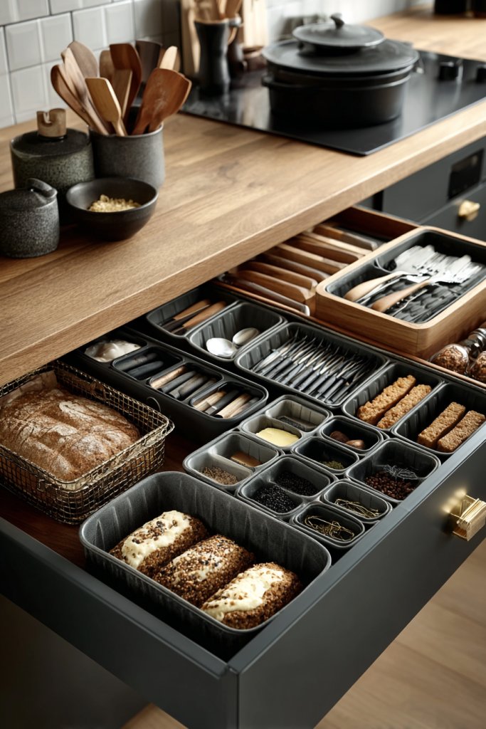 Picture a wide drawer filled with neatly separated sections—spoons, knives, spatulas, and gadgets—all in their designated spots. The dividers are adjustable to fit different sizes and shapes, so everything feels organized and contained. The materials—plastic, bamboo, or metal—are chosen to match your decor and withstand daily use. The overall effect is a calm, clutter-free drawer that makes cooking more enjoyable.