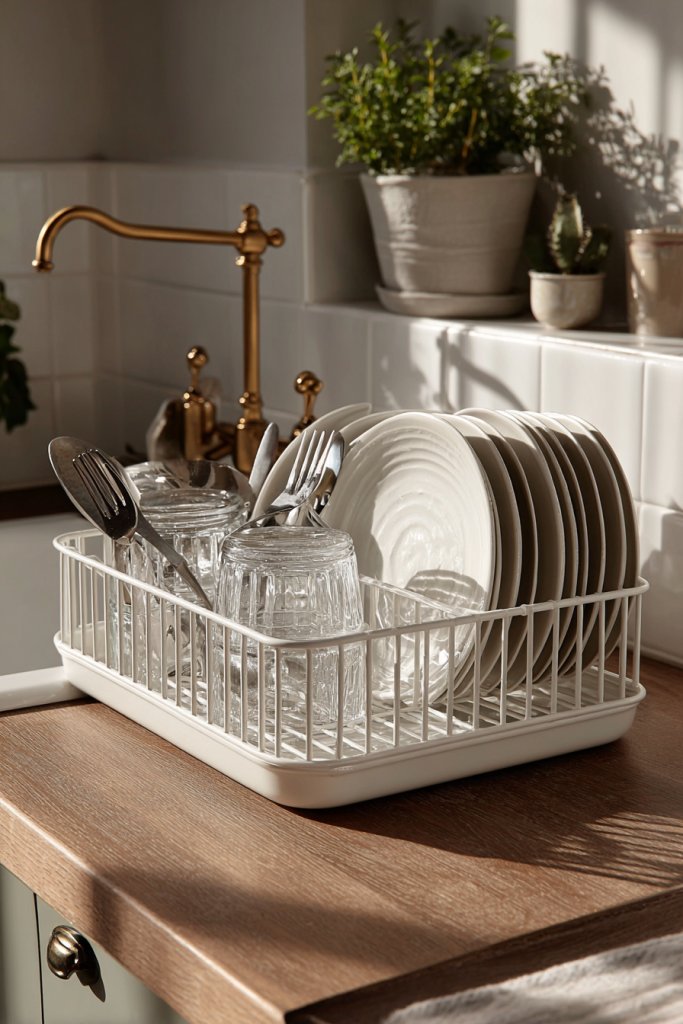 A compact over-the-sink drying rack is a practical upgrade that keeps your kitchen clean and organized. It’s easy to install and adapt to your household size. Once in place, it makes dish drying faster and less cluttered. Ready to reclaim your countertop and make dishwashing a breeze? Your sink area will thank you!