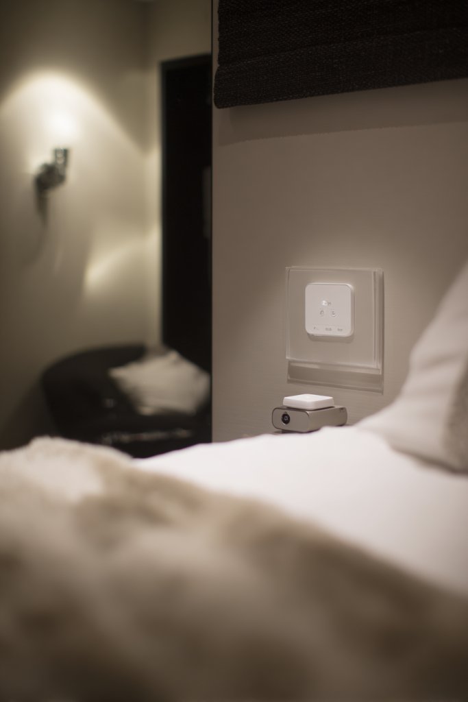 Imagine warm, radiant floors beneath soft rugs, making every step feel cozy. A sleek, white noise machine sits quietly on your bedside table, emitting calming sounds—rain, waves, or white noise—masking outside disturbances. Soft lighting and plush bedding complete the scene, creating a peaceful retreat. The room feels like a warm cocoon designed for deep relaxation.