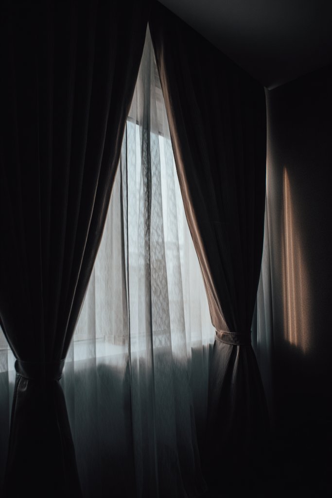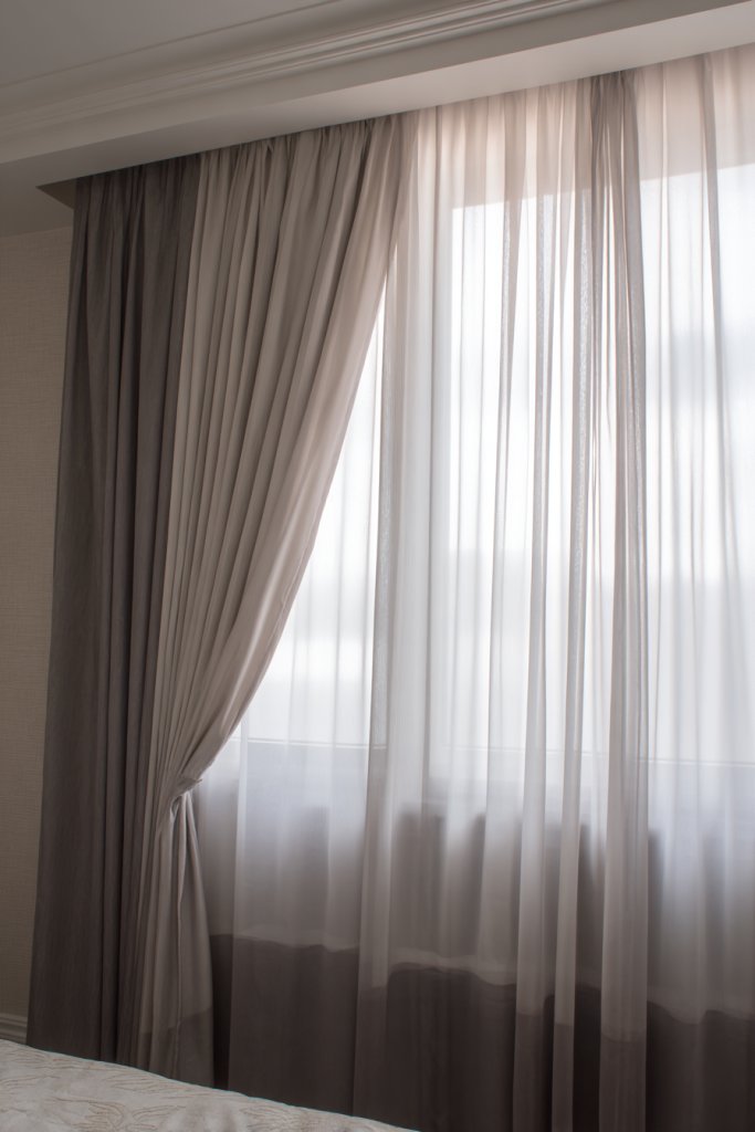 Imagine a combination of sheer, semi-sheer, and blackout curtains layered in front of your windows. As you draw the layers, the room transitions from bright and airy to dark and restful. The textures and fabrics create a rich, inviting look, framing your windows beautifully. The soft folds and gentle colors add visual interest without clutter. The layered effect elevates the design while providing practical light control.