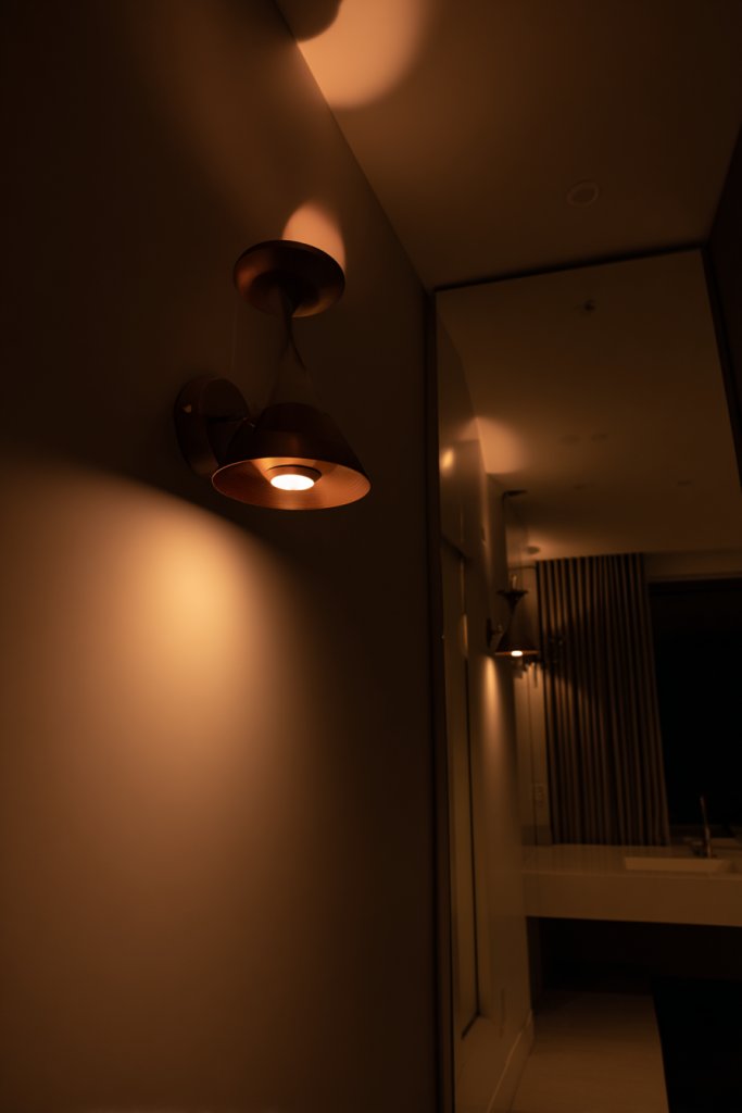 Imagine bedside sconces casting a warm glow, adjustable with a simple twist or switch. Pendant lights hang delicately over a sitting area or the bed, their light softened by fabric shades. LED strip lighting along the ceiling or behind furniture provides subtle, indirect illumination. The room glows with a cozy, layered light that changes with your needs. Shadows dance gently across textured walls, creating a peaceful ambiance perfect for relaxing or sleeping.