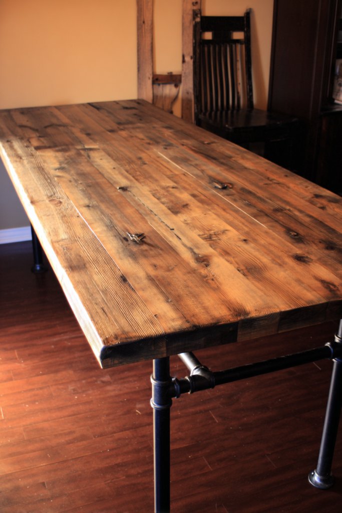 1. Reclaimed Wood Farmhouse Table with Industrial Pipe Legs