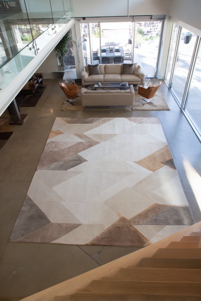 Envision a large living area divided into three zones: a seating area with a plush rug anchoring the sofa and chairs, a reading nook with a textured throw, and an entertainment corner with a sleek media console. The rugs delineate each zone and add softness underfoot. Arranged furniture, such as sectional sofas or modular pieces, further clarifies the purpose of each space, creating a natural flow.
