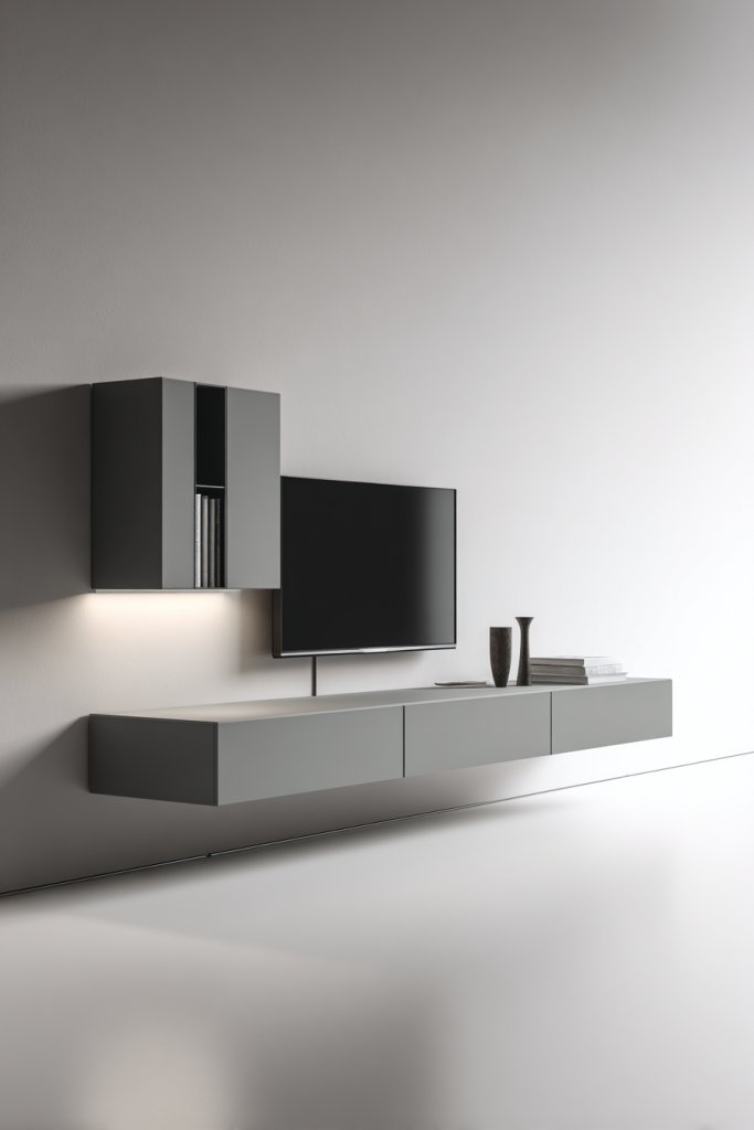 8. Floating Cabinets and Wall-Mounted Media Units for a Clean Look
