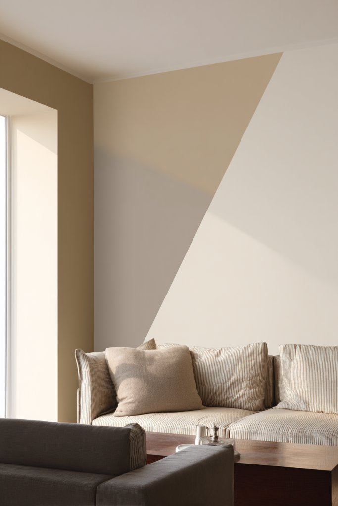 Imagine a wall painted in a crisp, contrasting two-tone scheme—say, soft gray at the top and deep navy at the bottom, separated by a clean, straight line. Or visual blocks of bold colors like blush pink and charcoal, arranged in geometric shapes for a striking effect. The clean lines and sharp edges create a dynamic visual flow that guides the eye and makes the space feel larger and more curated. When natural light hits these walls, the colors come alive, adding vibrancy and sophistication.