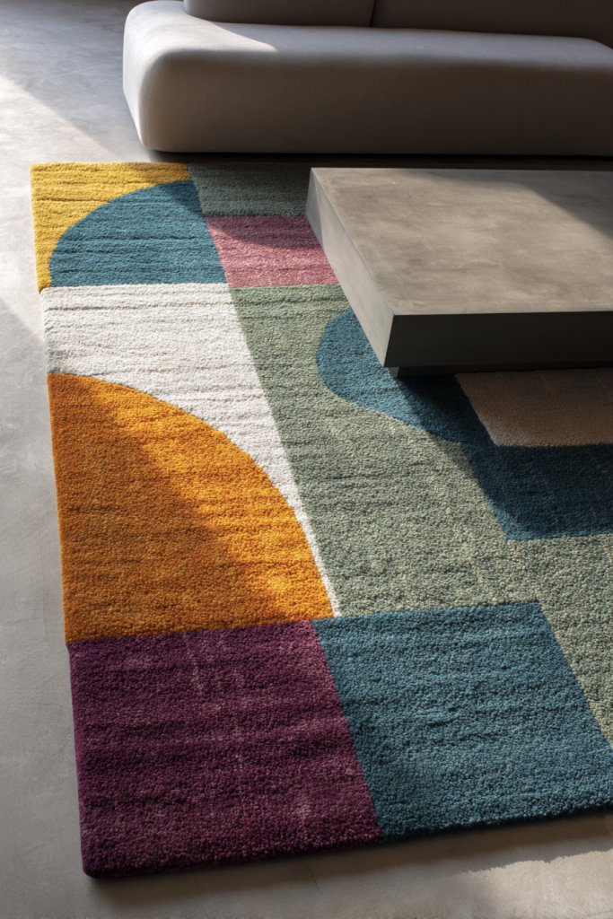 Add a pop of color with contrasting borders or fringed edges. Customize with DIY painted or stitched patterns for a personal touch. Layer smaller mats or textured runners for added depth. Use complementary cushions, throws, or wall art that pick up on the rug’s geometric motifs for a harmonious look.