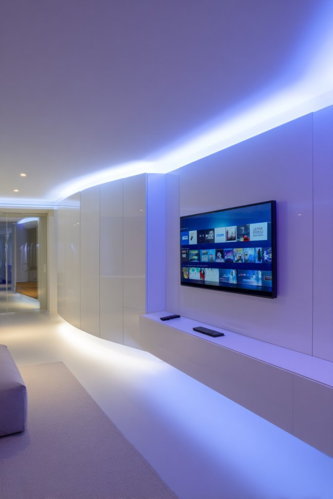 17. Smart Tech Integration with Hidden Cables and Automated Lighting