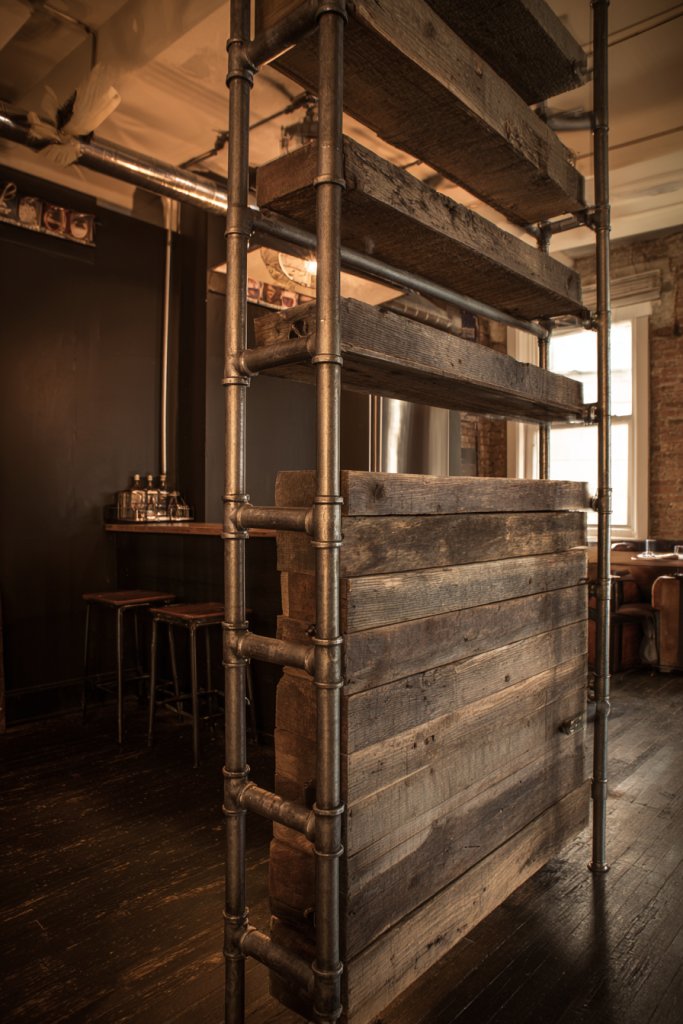 12. Industrial Pipe and Wood Screen for Rustic Charm