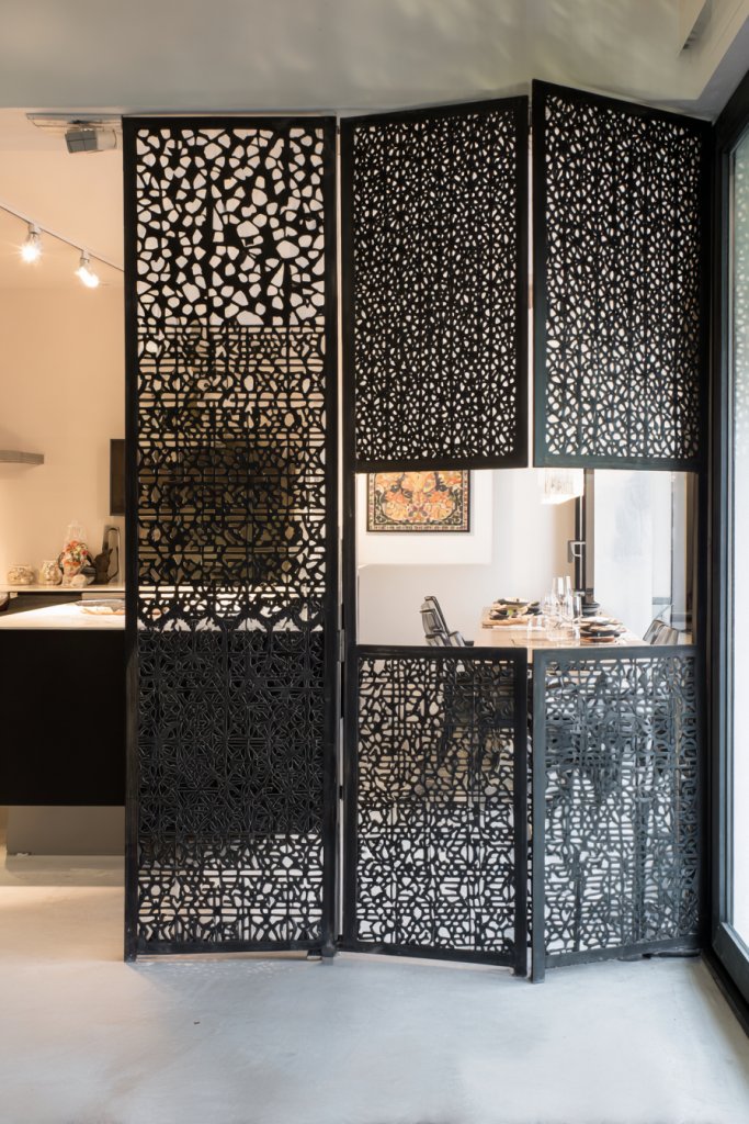 Craving a focal point that’s both functional and artistic? Metal screens with intricate cutouts add a bold, decorative element that separates spaces with style. They bring personality and craftsmanship into your open layout. Who says partitions need to be plain?