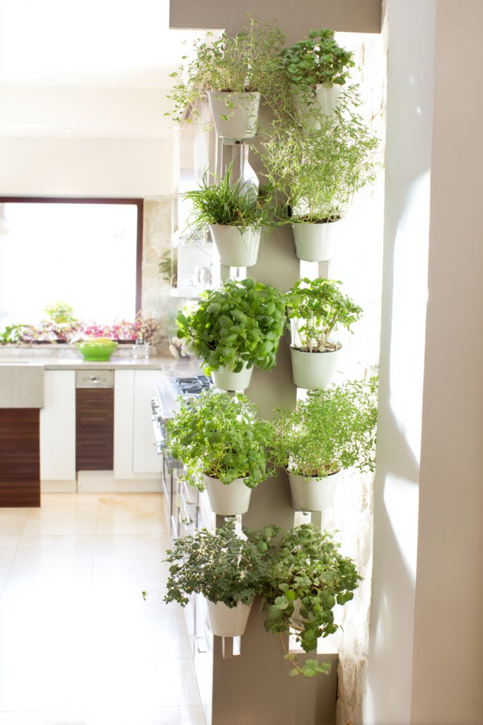 8. Plant Stand Walls with Potted Greenery for a Natural Barrier