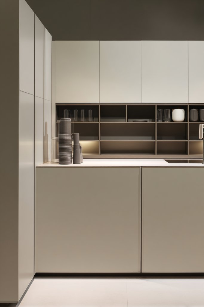 Imagine a sleek, low-profile cabinet with a smooth finish, topped with open shelves displaying colorful plates, bowls, or glassware. The combo creates a clean, organized look that’s easy to access. The open shelves brighten the space and add a layer of visual interest, breaking up the solidity of the cabinets below. It’s both a storage solution and a design feature.