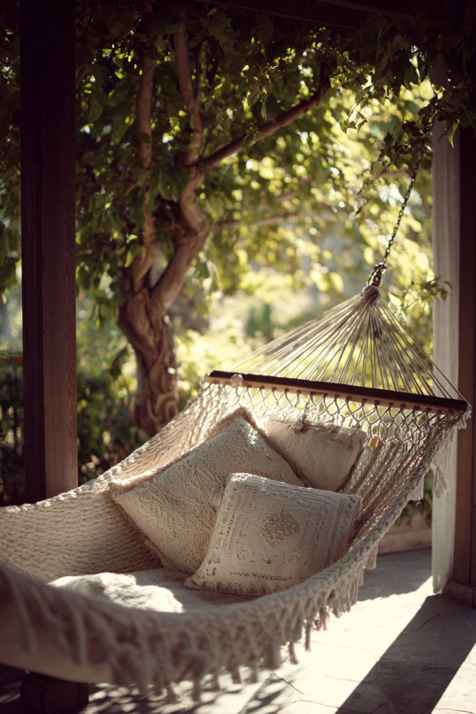 Choose hammocks made from durable fabrics like canvas or weatherproof rope, or opt for a stylish swing chair with a sturdy frame. For small patios, a freestanding hammock or a compact swing frame works best. Decorate with bright pillows, lightweight blankets, or decorative tassels to add flair. In cooler months, swap in plush, warm textiles to keep the cozy feeling alive. Consider adding a small side table or storage ottoman nearby for convenience.