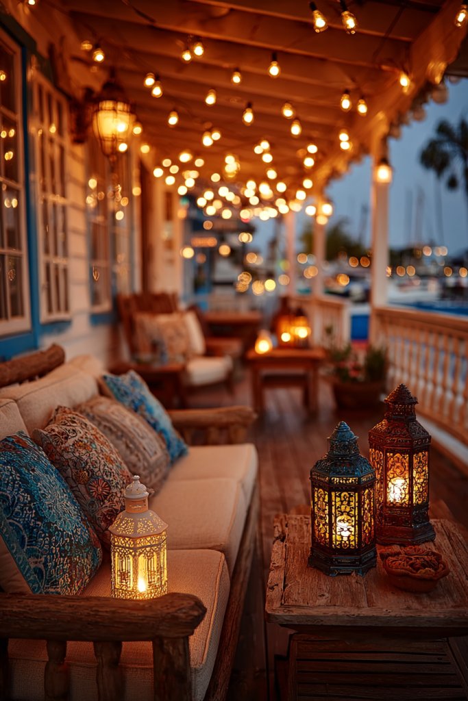 2. Use Warm, Ambient Lighting with String Lights and Lanterns